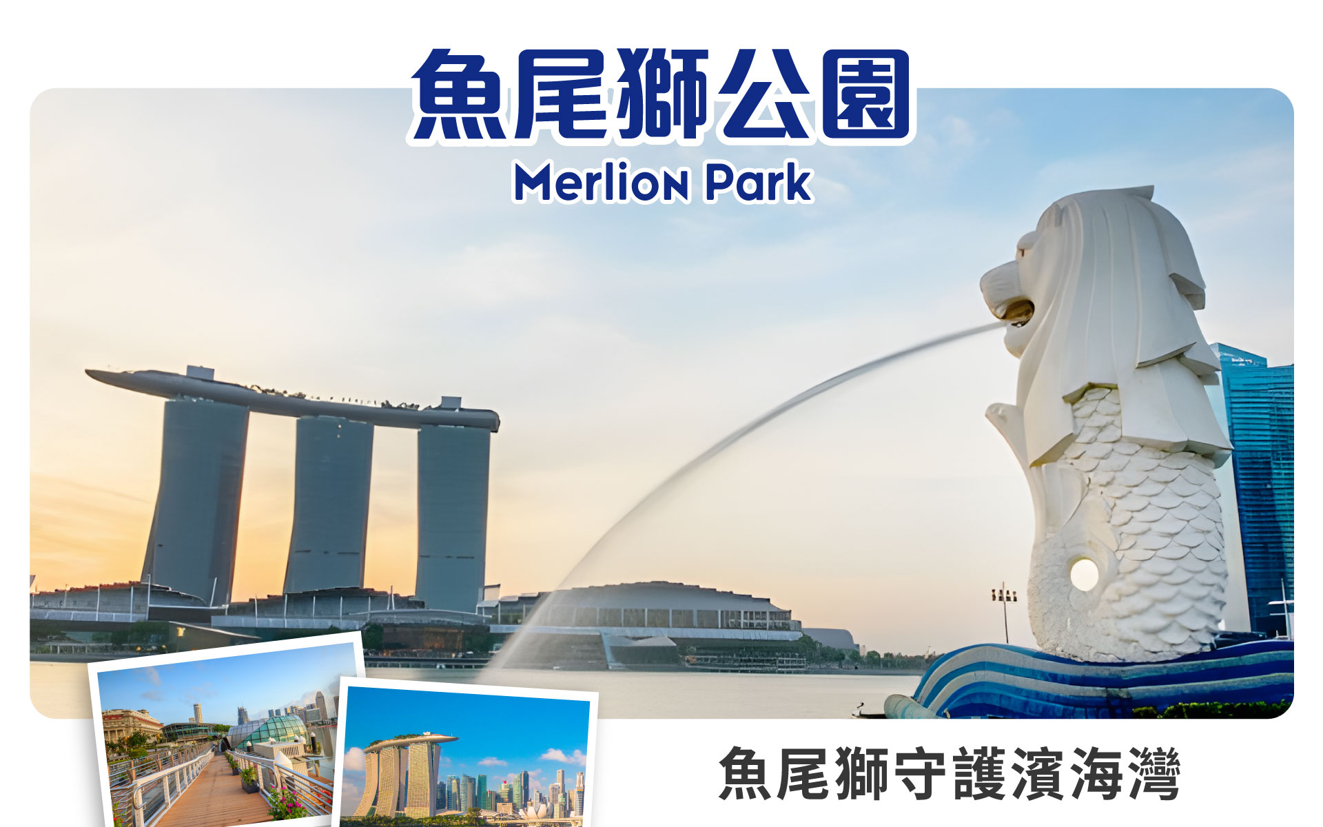 【魚尾獅公園】魚尾獅像的新家,魚尾獅身後是具有古希臘列柱的浮爾頓酒店與金融區摩天大樓所連成的都會景緻。一定不能錯過的是,在這您可一次將魚尾獅像、新加坡最具代表性的建築物金沙娛樂城、及新加坡閃亮的地標濱海藝術中心,一同與您入鏡,留下美麗的合影。