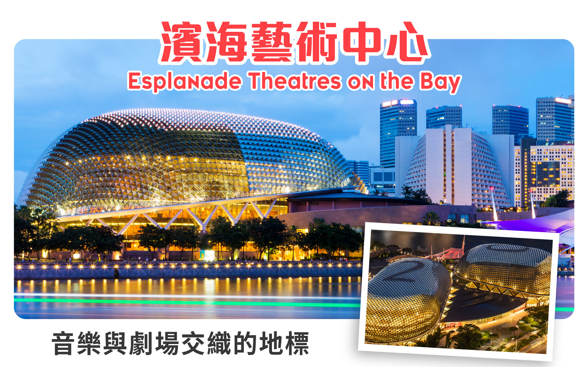 【濱海藝術中心】新加坡閃亮的地標,遠遠望去,彷彿兩只靜臥在濱海灣的大貝殼,入夜後就散發金黃色光芒,此特別的造型更贏得當地熱門水果「大榴槤」的暱稱。